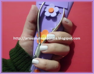 Falando em presente, fiz este estojinho em EVA para guardar e proteger o alicate de cutículas, e dei de presente para....euzinha! rs